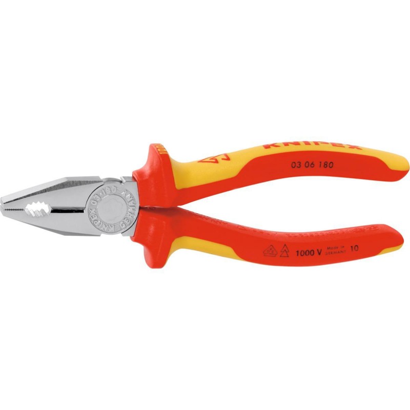 Speciaal gereedschapsstaal, grijpbekken getand. Geïsoleerd volgens DIN EN 60900 / VDE 0682-201 voor werkzaamheden onder spanning tot 1000 V. Snijkanten extra inductief gehard (ca. 60 HRC).