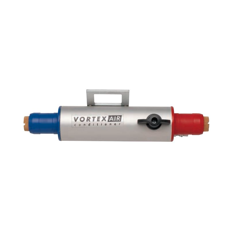 Airconditioner, die de perslucht, gebruikt als ademlucht, koelt of verwarmt. Voor beheersing van de interne temperatuur in o.a. korrelstraalhelmen en volledige chemische pakken . De temperatuur kan tot +/- 30 °C hoger of lager zijn dan de inlaattemperatuur. De Vortex Air Conditioner werkt zonder bewegende onderdelen, elektriciteit, freon of andere chemicaliën.