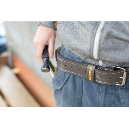 De STANLEY lederen riem is perfect voor het ondersteunen en veilig vasthouden van uw gereedschapshouders en -tassen. De riem is gemaakt van professioneel leer van hoge kwaliteit, waardoor hij sterk, stevig en duurzaam is. De verstelbare rolgesp is gemakkelijk te gebruiken. Het is geperforeerd om alle taillematen te passen.