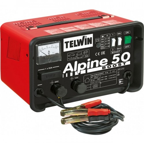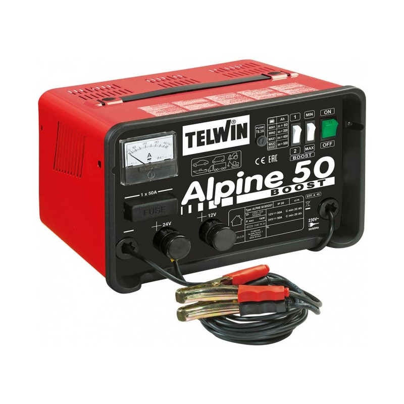 Acculader voor het opladen van loodzuur accu’s, 12-24 V. Deze acculader is beveiligd tegen overbelasting en verkeerd aansluiten van de accuklemmen. Uitgerust met ampèremeter en schakelaar voor BOOST-stand.