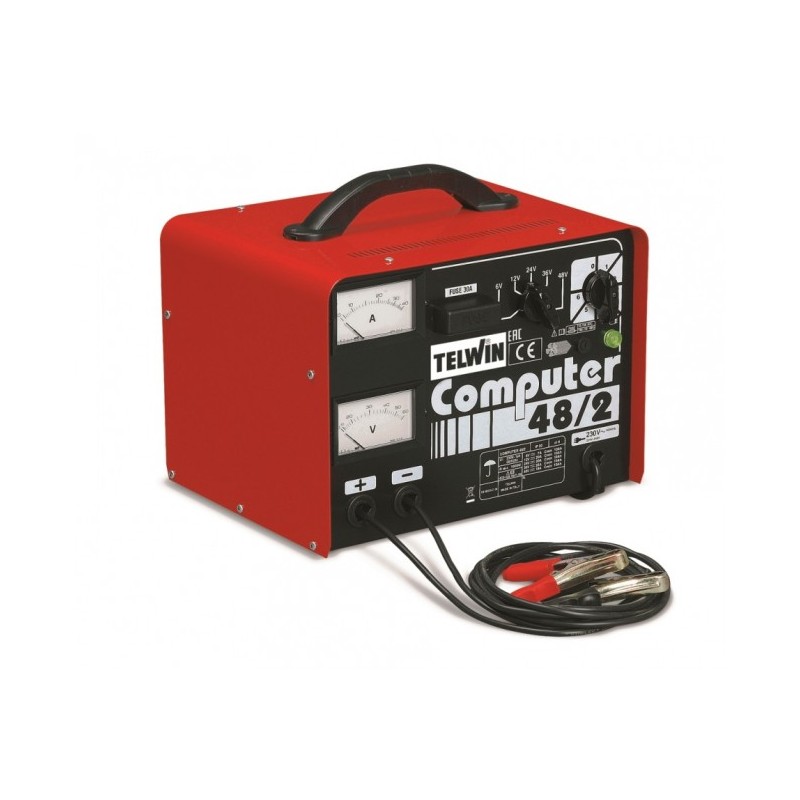 De acculader Computer 48/2 is een gigant als het gaat om het professioneel opladen van batterijen. Geschikt voor alle (natte) accu’s 6, 12, 24, 36 en 48 volt tot 300 Ah. De Telwin Computer 48/2 kan, serie geschakeld, gemakkelijk meerdere accu’s gelijktijdig aan. Deze acculader is er voor accu's met een vermogen tot 100 Ah (6 volt) en tot 300 Ah (12 t/m 48 volt). De laadcapaciteit is 11A bij accu's 6 volt, 30A bij accu's 12/24/36 volt en 27A bij 48 volt-accu's. Op het robuuste en overzichtelijke bedieningspanel, met grote schakelaars, stelt u het gewenste voltage in en deze pure acculader gaat aan de slag. Voor accu’s van klein tot grote voertuigen. Van bromfiets tot boot, van tractor tot graafmachine en alles daartussenin: deze multi-charger kan het laden van hun accu's met gemak aan. Stuk voor stuk of in één maal tegelijk.