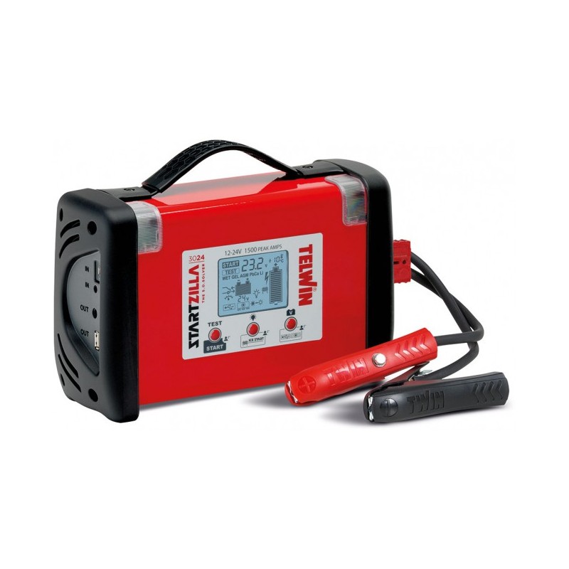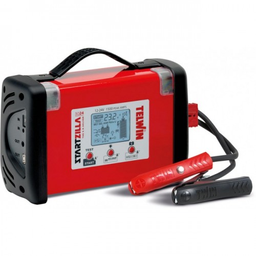 De Startzilla 3024 is een multifunctionele elektronische starter én tester. Met de onderhoudsvrije LiPo lithiumbatterijen start u eenvoudig uw voertuig. De booster is buitengewoon licht, compact en... krachtig, óók bij polaire temperaturen! Deze booster detecteert automatisch de buitentemperatuur en past de benodigde operationele functies daarop aan. De 600A startpower met een piek van 1200A geeft met gemak het extra benodigde vermogen. Hiermee krijgt u uw auto, bestelwagen, kleine boot en/of bijvoorbeeld kleinere vrachtwagen vlot aan de gang. Deze jump starter is inzetbaar voor voertuigen van 12V en is geschikt voor deze accu’s: wet, AGM, gel en start/stop, en in de testmodus tevens Lithium In.De Startzilla 3024 is tevens een tester. Dit betrouwbare apparaat voert controles uit op de accu. Checkt zowel de spanning op de accupolen, de startcapaciteit (CCA) als het laadsysteem van uw voertuig. De indicatoren op het display tonen bovendien nauwkeurig het batterijniveau. Uw booster kan tevens fungeren als een Power Bank (!). Er is een USB-uitgang (5V / 2.1A) voor uw elektronische apparaten. Denk hierbij aan tablets, smartphones, mp3-spelers, camera's, enzovoort. Er is ook een jack uitgang met programmeerbare spanning (12,16,19V). Kortom, een must-have voor in uw auto of ander voertuig.