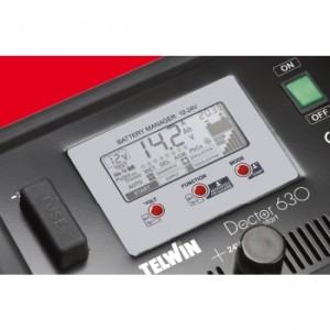 De Telwin Doctor Charge 630 is een zeer moderne en complete acculader geschikt voor vele soorten accu’s. Te gebruiken voor het laden, onderhouden en herstellen van accu's van motoren, auto's, tractoren, vrachtwagens en graafmachines. De Doctor Charge herkent automatisch het type accu en stemt het laadprogramma, herstel- of onderhoudsprogramma af op het type accu. Geschikt voor het laden, onderhouden en het herstellen van gesulfateerde of zeer ver ontladen accu's. Beschikt over een overzichtelijk en helder display. Vriendelijke in gebruik.