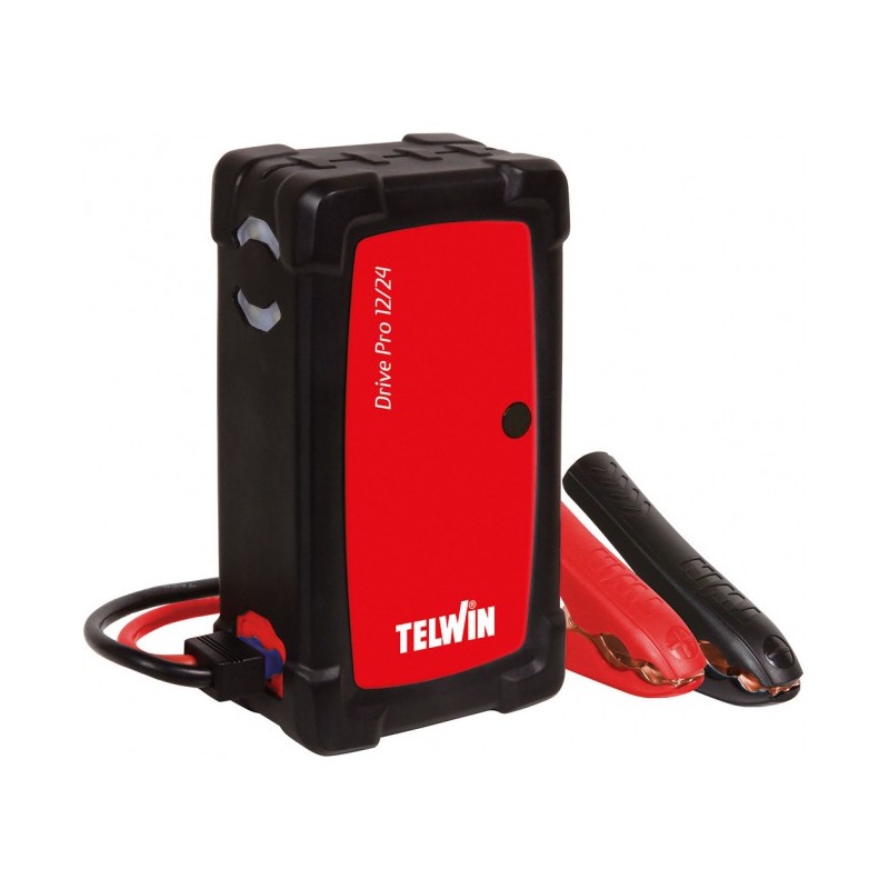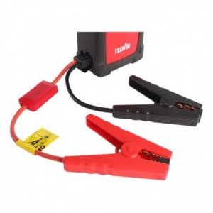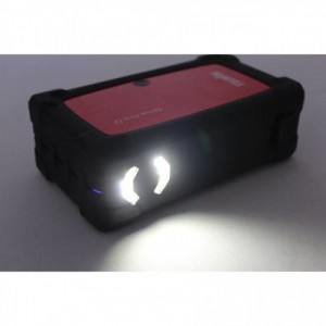 Powerbank voor telefoon, tablet en laptop met LED lamp en bijgeleverde klemmen om een 12/24V voertuig op te starten.