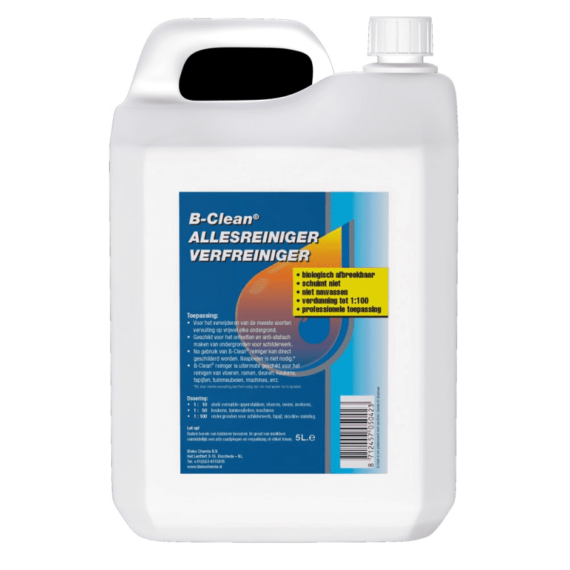 Een niet schuimende reiniger die speciaal is ontwikkeld voor de professionele schilder. B-Clean verf / allesreiniger is een fosfaatvrije en biologisch afbreekbare ontvetter.