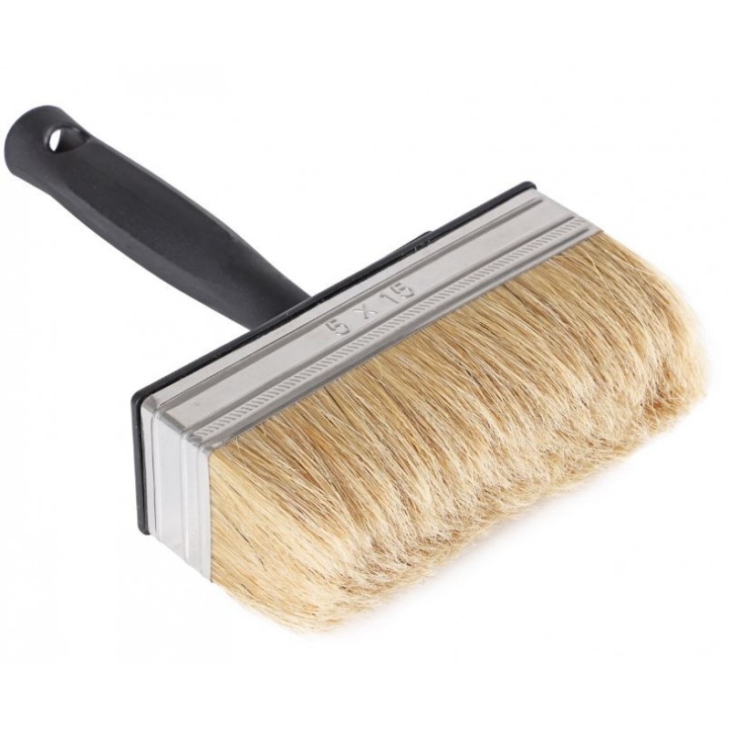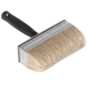 Blokwitter met kunststof kap en steel voorzien van een nikkelen bus. De haren zijn vervaardigd van wit Chinees varkenshaar. Deze universele wegwerp blokwitter is geschikt voor alle verfsoorten. Waaronder ideaal voor muurverven. Voorzien van een emmerhaak.