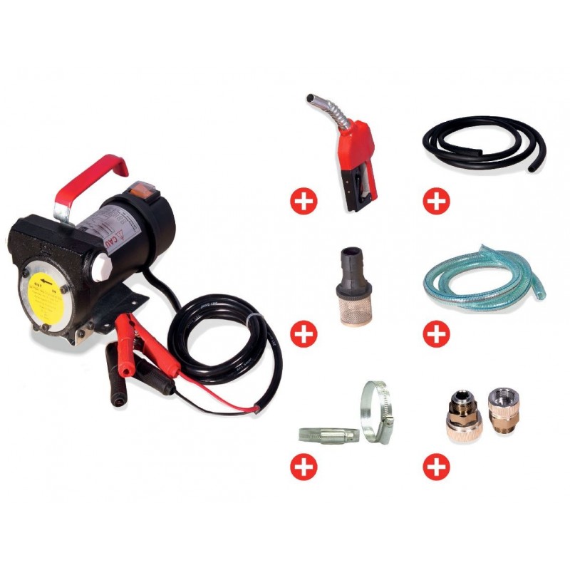 Set van draagbare dieseloverdrachtpomp met hoge debiet met slangen en handpistool.