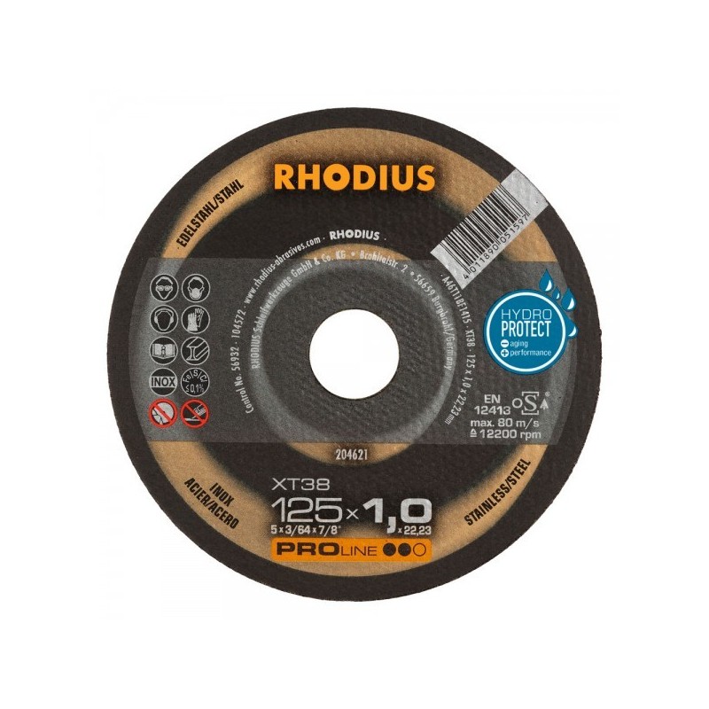 De XT38 biedt een indrukwekkend lange levensduur (gereedschapslevensduur) tijdens gebruik, zelfs in massief materiaal, gecombineerd met een zeer agressieve, lichte en snelle snede. Nauwkeurig werk bij het bewerken van dunwandig materiaal is ook eenvoudig te bereiken. De schijf heeft minimale vonkvorming, lage stofontwikkeling en een zeer soepele, trillingsvrije werking. Dit alles maakt het werk gemakkelijker en is vooral rendabel. De XT38 biedt gebruikers een optimale prijs-/prestatieverhouding. Deze hoogwaardige RHODIUS-gereedschap is een bijzonder goede keuze voor het snijden van constructiestaal, gereedschapsstaal, verenstaal, dunwandige metalen platen, roest- en zuurbestendige staalsoorten, hooggelegeerd staal, hoogwaardig plaatstaal, kabelgoten, steunen en profielen.
