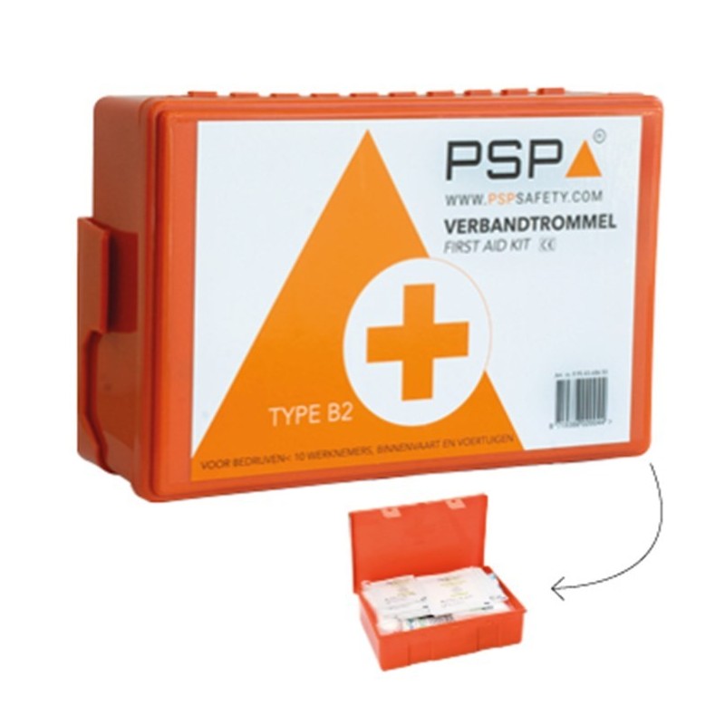 Het PSP 43-686 First Aid Kit, Type B2 (bedrijf) is een verbandtrommel met een stevig kunststof wandhouder. Deze First Aid