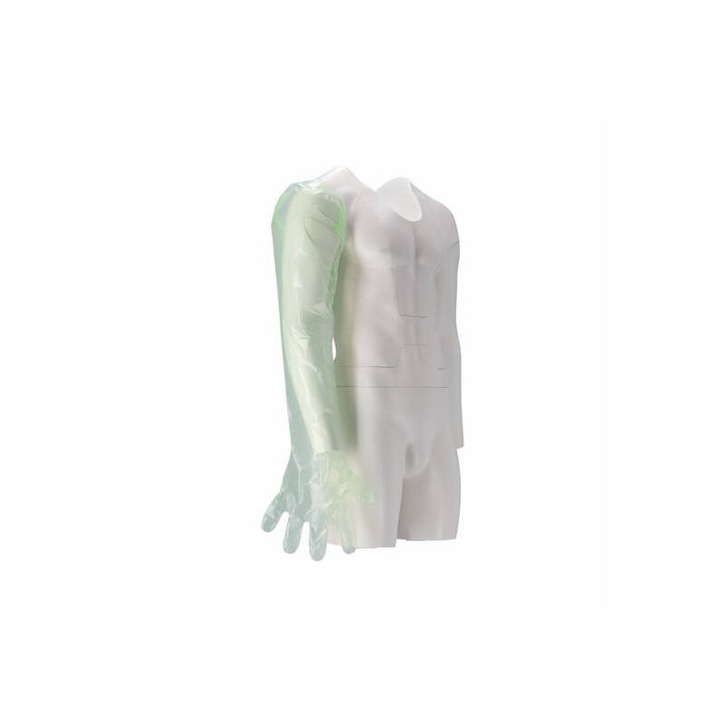 Deze CMT LDPE veterinaire handschoenen zijn met hun 90 cm langer dan reguliere PE handschoenen. De groene handschoenen bieden bescherming tot aan de oksel en kunnen besteld worden per doos van 1000 stuks. De onmisbare handschoen voor veeartsen!