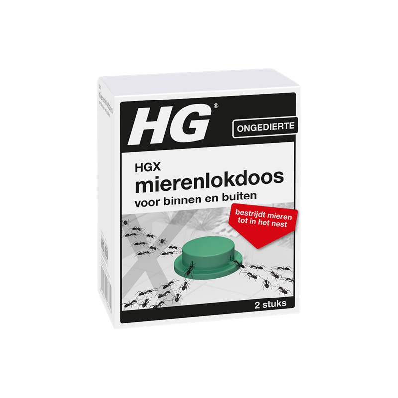 De verpakking van de HGX mierlokdoos bevat 2 stuks mierenlokdozen. Vanuit deze mierenlokdoosjes nemen de mieren de werkzame stof mee naar het mierennest, waardoor zij in het nest gedood worden. De HGX mierenlokdoos is daarom niet alleen een zeer effectieve, maar ook een zeer schone methode om mieren te bestrijden. Onze mierenlokdoos kan zowel binnen als buiten gebruikt worden.