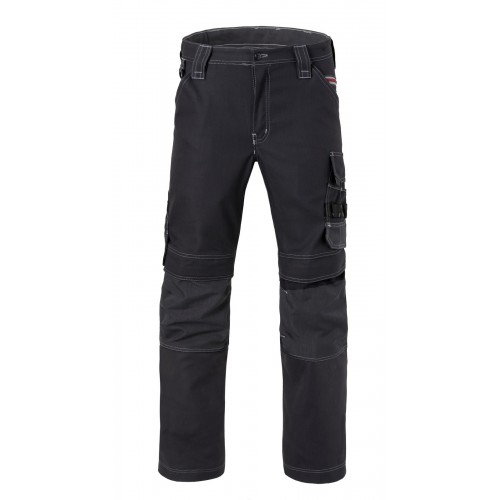 Verdekte ritssluiting, 2 ruime ingezette zijzakken waarvan 1 extra zakje met rits, 2 ruime achterzakken waarvan 1 met klep, loshangende duimstokzak met extra toolzakjes, ruime loshangende dijbeenzak met klep en extra opbergmogelijkheden door de geïntegreerde GSM-zak en de extra toolzakjes, makkelijk toegankelijke Cordura® kniezakken met opening aan bovenzijde afsluitbaar met klep en klittenband, voorgevormde broekspijpen voor zeer goede pasvorm, Cordura® versterkingen en drievoudig gestikte naden op kwetsbare plekken voor een extra lange levensduur, brede riemlussen, verstelbare hamerlus d.m.v. drukknoop, zeer sterk ademend stretch doek (polyamide/Lycra) in de knieholte voor optimaal draagcomfort, extra inzet bij kruis ter voorkoming van uitscheuring, 1 D-ring voor badgehouder, reflecterende piping