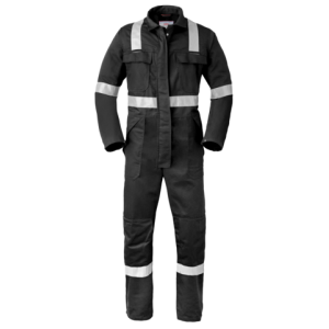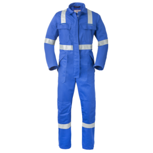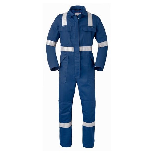 Verdekte drukknoopsluiting, 2 zijzakken met klep, 2 afsluitbare intasten, 2 borstzakken met klep, achterzak met klep, duimstokzak met klep, kniezakken, elastiek in rug, rugplooien, mouwen met steldrukkers, reflectieband, voorzien van 2 gasmaskerlussen