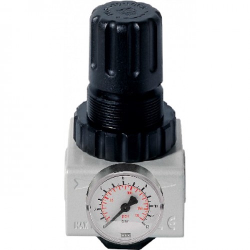 Drukregelaar instelbaar van 0-12 bar. Met beveiligde drukinstelling.
