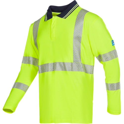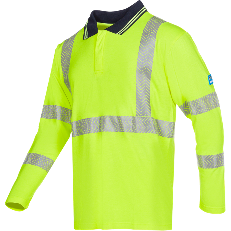 De Garat is een vlamvertragende, antistatische signalisatiepolo met goede vochtregulerende eigenschappen. De polo met lange mouwen en omlegkraag werd antibacterieel behandeld en beschermt u bovendien tegen blootstelling aan UV-zonlicht. Deze comfortabele en zachte polo verhoogt uw zichtbaarheid tijdens het werk dankzij de gelaste, gesegmenteerde reflecterende tape op armen, borst, buik en rug.