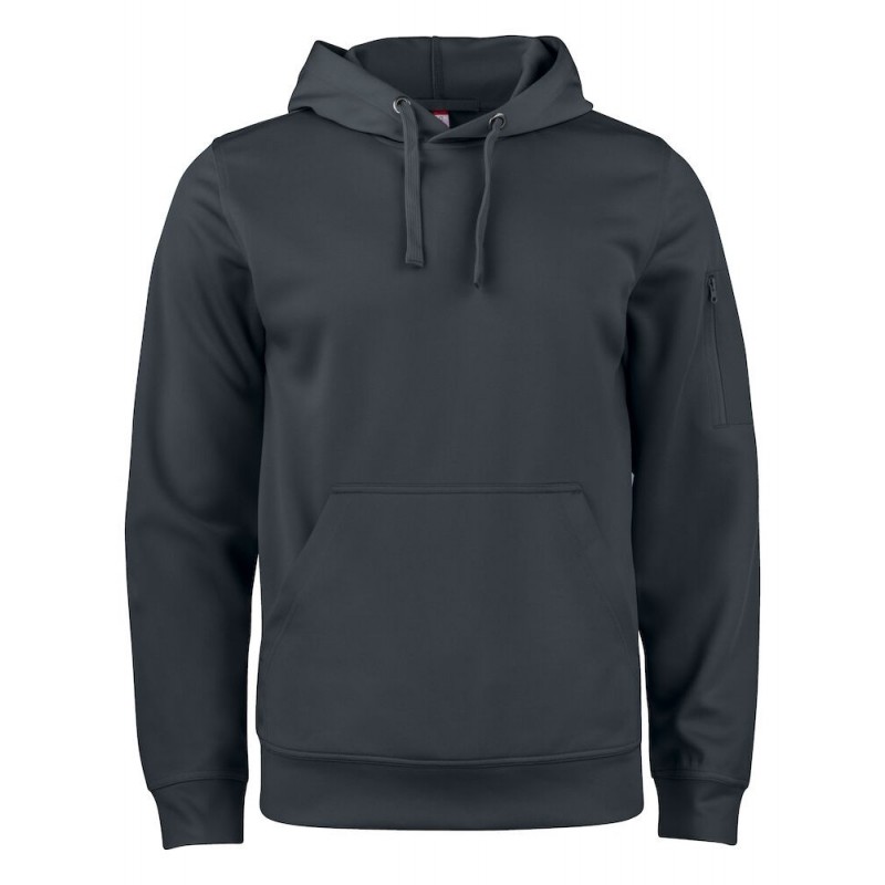 Moderne sweater met capuchon voorzien van een doorvoer voor een koptelefoon, buidelzak en ton sur ton zak op de mouw met rits. De sweater is ingeverfd door middel van Spun Dyed. Het trekkoord in de capuchon, de rib in de boord en onderaan de mouwen en het visgraat necktape geven de sweater een verzorgde uitstraling.