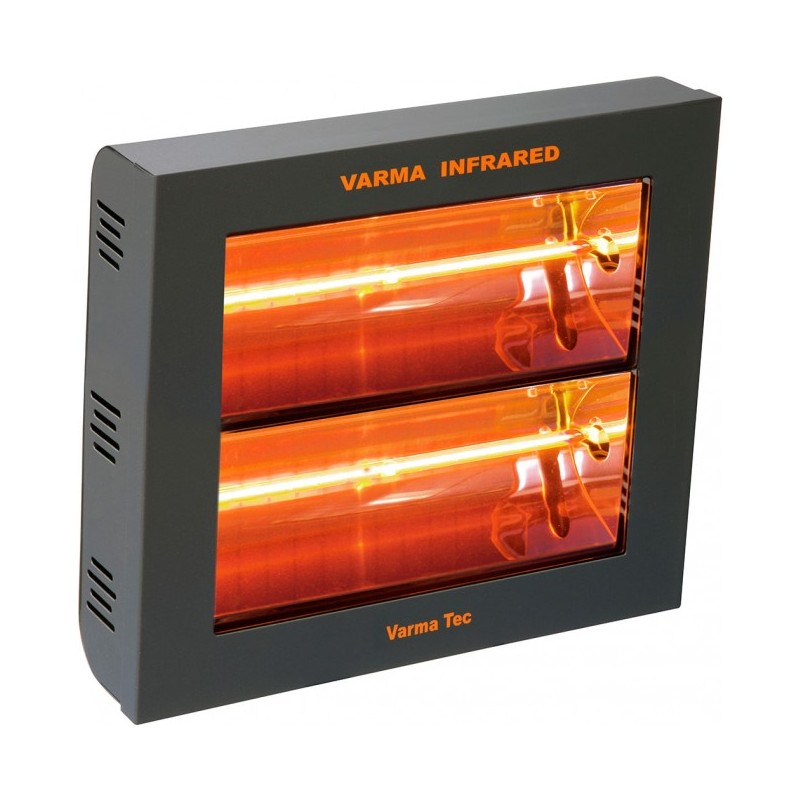 Dubbele infrarood verwarming in draaibare, muur- of plafond gemonteerde uitvoering. Verticaal boven elkaar. Uitgevoerd met 2 stuks 1,5 meter hittebestndige kabel en een steun om de verwarming aan de muur te bevestigen. Voor zowel binnen als buiten gebruik. Speciaal ontworpen voor de verwarming op en in fabrieksgebouwen, kerken, laboratoria, markthallen, tijdelijke gebouwen en sportvelden. Een steun voor de bevestiging aan het plafond of standaard is apart verkrijgbaar.