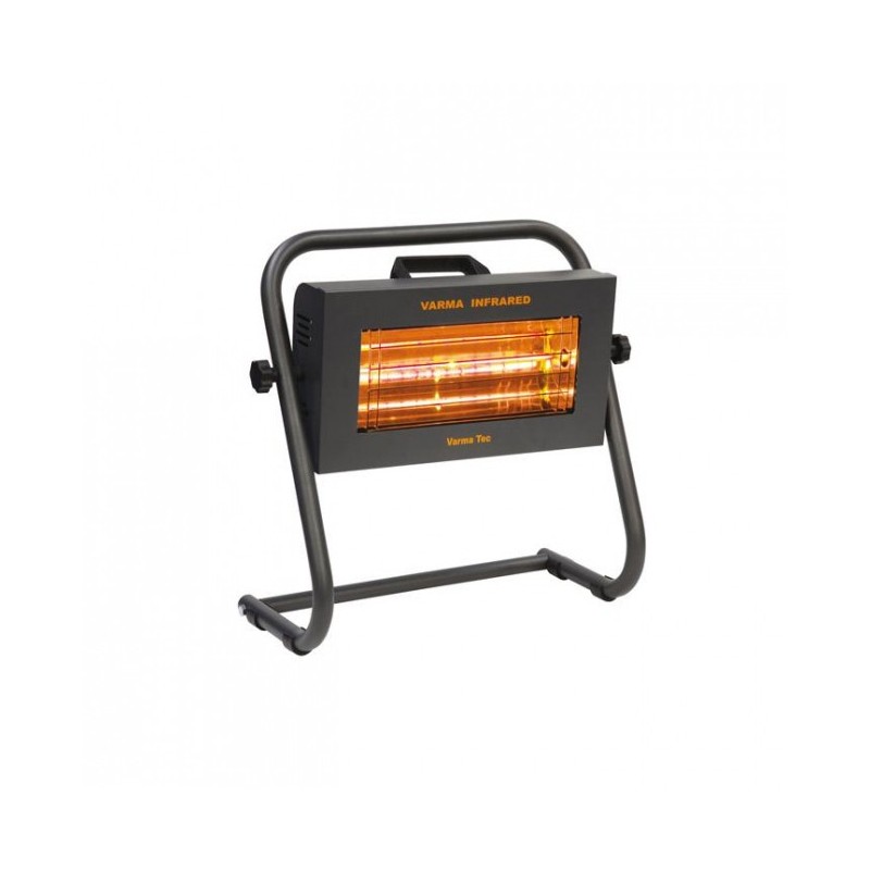 Infrarood verwarming met mobiele standaard. Draaibaar. Uitgevoerd met 3,0 meter hittebestendig snoer met aangegoten stekker (HO5SS-F). Voor binnen en buiten gebruik. Speciaal ontworpen voor de verwarming van werkplaatsen, showrooms, buitenactiviteiten en drogen.