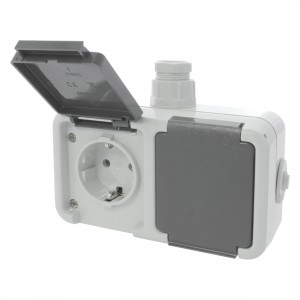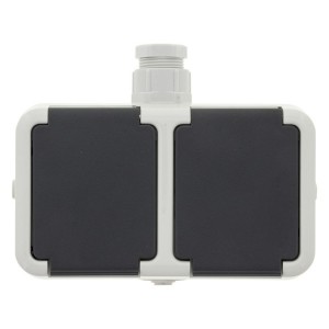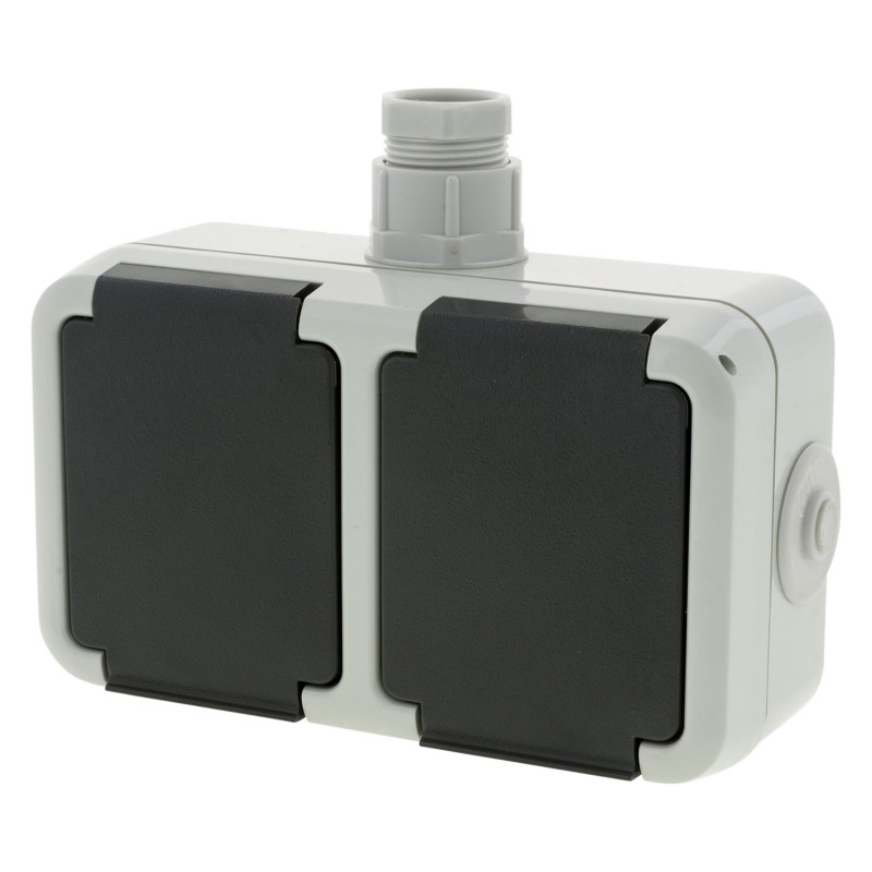 Wandcontactdoos opbouw, 2-voudig, randaarde, met wartel M20 grijs