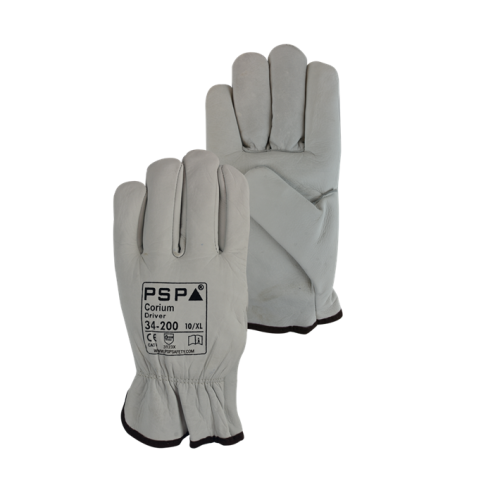 De PSP Corium Driver 34-200 is een chauffeurshandschoen gemaakt van eersteklas rundnerfleder. Soepel gelooid leder van 1,0 mm dikte. Handschoen is vrij van Chromium VI. De handschoenen zijn afgezet met een biastape in verschillende kleuren ter indicatie van de maat. Artikel PSP 34-200 is getest en gecertificeerd conform de Europese Verordening (EU) 2016/425 en de EN-normen EN420 / EN388:2016.